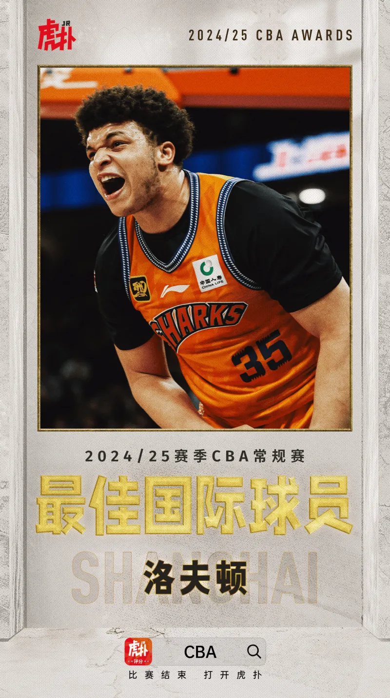 CBA官方:洛夫顿当选本赛季CBA常规赛最佳国际球员